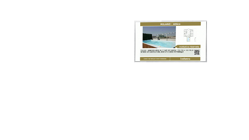 Creazione di codici QR Code per ciascun immobile dalla vetrina il potenziale cliente, tramite il proprio Smartphone/Tablet, potrà ottenere il link alla pagina del Vostro sito con tutti i dati dell’immobile (oppure inviarVi automaticamente una mail o un SMS con i riferimenti dell’immobile che sta guardando in modo da essere ricontattato).