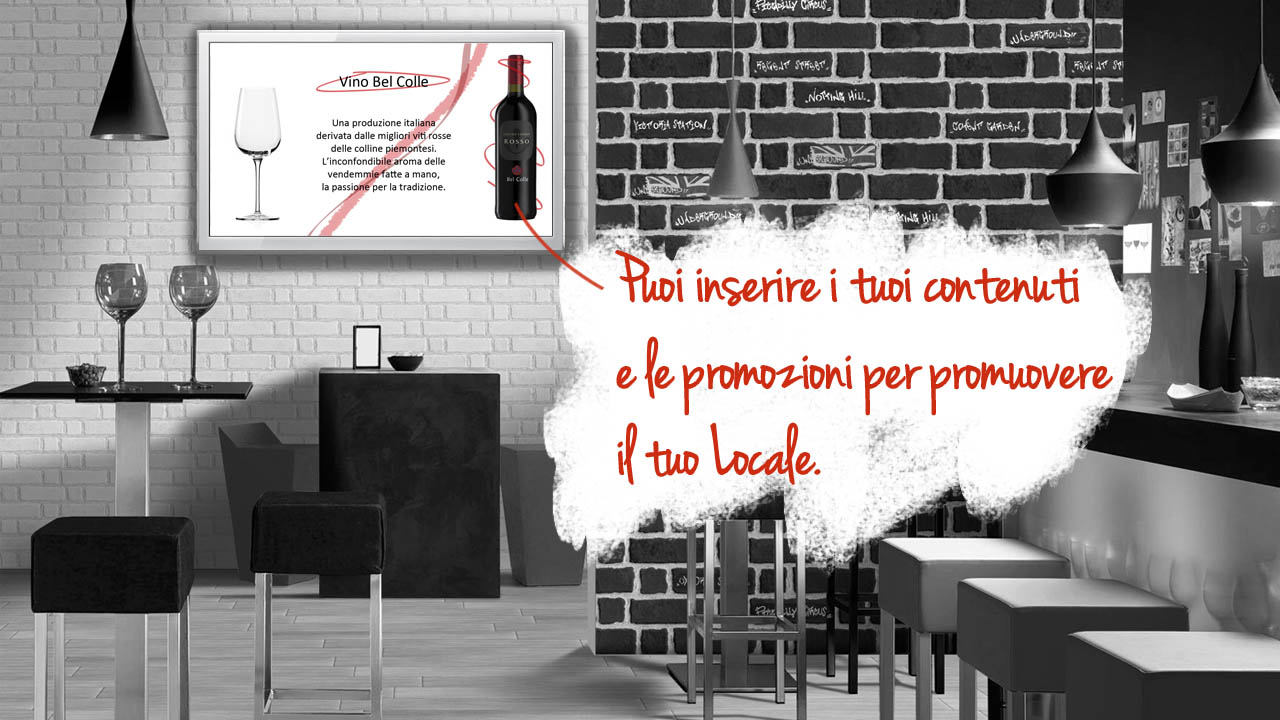 Con VIDEOTHRON è possibile informare ed intrattenere i propri clienti promuovendo i servizi ed i prodotti offerti rendendo dinamico il proprio Locale, attirando l'attenzione della clientela tramite contenuti digitali su uno o più schermi.